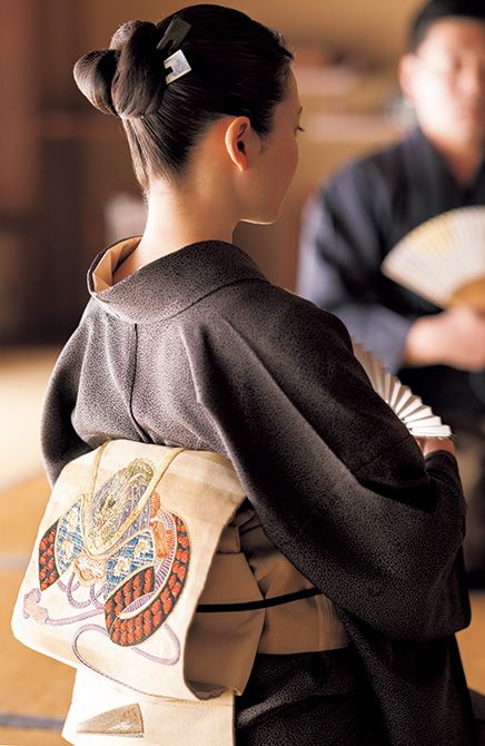 二階堂さんが締めているのは、昭和初期のアンティークの帯。兜の刺繡が入ったお太鼓柄で、季節感と武家の礼節を習う気持ちを表現した。床の間に飾られた兜の香炉とも響き合う。