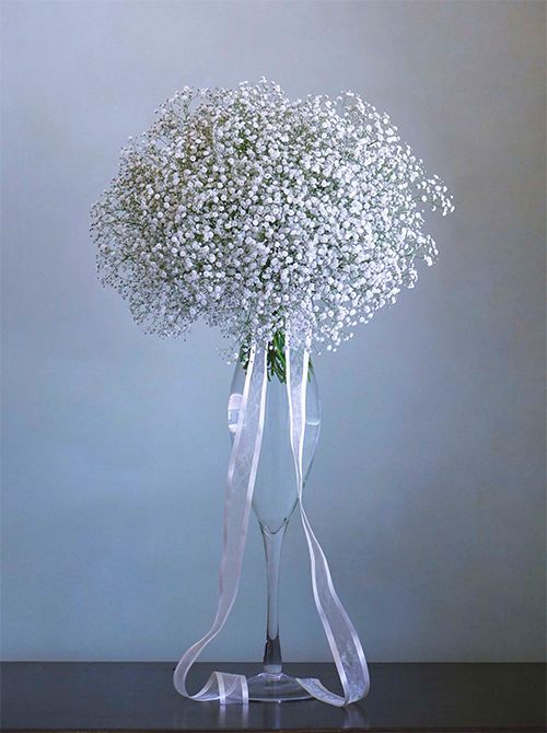 GI(地理的表示)保護制度登録の書類のために制作した「昭和かすみ草」だけのシンプルなブーケ。ウエディングブーケをイメージして制作しました。昔のカスミソウに比べると花が大きく密についているので、純白のブーケがつくりやすくなりました。ウエディングでも「カスミソウだけで…」というリクエストをよくいただきます。記事を読む>>