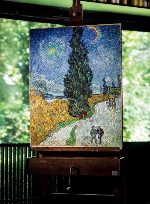 晩年の傑作の一つ《夜のプロヴァンスの田舎道》では、独自のタッチがいよいよ極まり、ゴッホの息遣いまで感じられるかのようです。