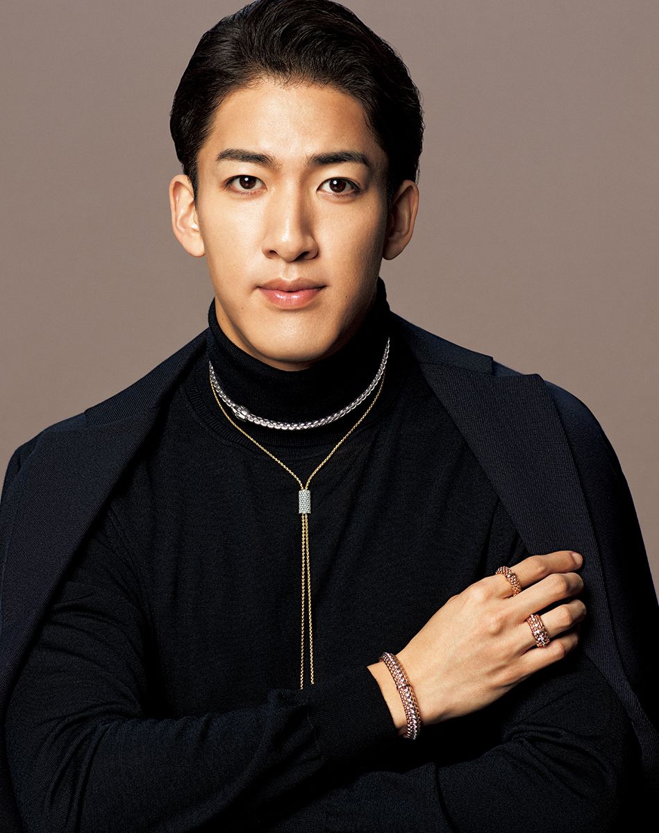 「代々家族で伝統を守りながら、チェーン技術の特許を取ったりと進化を続けているのがすごいですよね。そこに歌舞伎とも重なる部分があり、共感を覚えます。私自身も自分を高め、前進するために少し背伸びをして本物を纏い、内面を磨きたい。そんなとき、フォッペのジュエリーは軽くて心地よく肌になじみ、とてもエレガントで最適だと思います。留め具がなく着脱が簡単なので、Tシャツに合わせて普段づかいしたいですね」