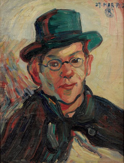 色彩の豊かさや筆触の力強さがみなぎる自画像。ゴッホの影響を如実に示した作品。