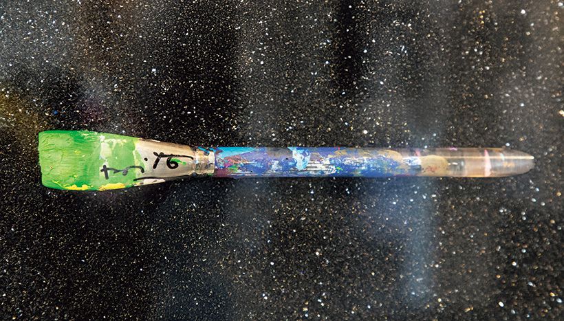 ロメロさんが使った筆。鮮やかな色の絵の具が残っている。
