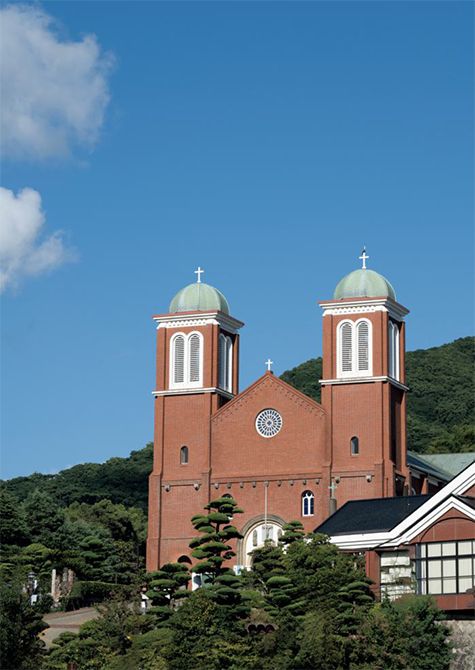浦上天主堂は、その美しく荘厳な佇まいと規模から、かつて「東洋一の教会」と称されていました。長崎に原爆が投下された1945年8月、爆心地からわずか500メートルほどの位置にあった天主堂は、建物は倒壊し焼失──、信徒を含めた多くの方がその犠牲となりました。1959年に新たな天主堂が再建され、現在、長崎の被爆の象徴、平和祈念のシンボルとなっています。