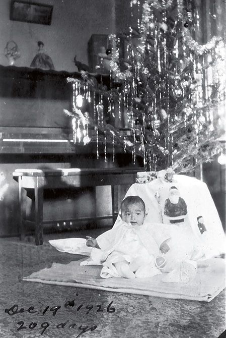 生後7か月の明子さんとピアノ。ロサンゼルスの自宅にて(1926年12月)。