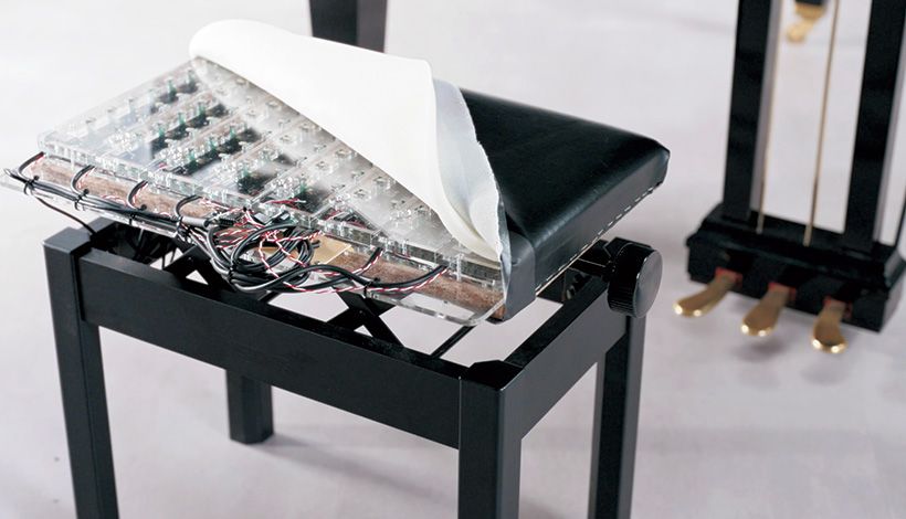 鍵盤を操作する指の動きと、音の関連性を科学的に分析し、さらには椅子にもセンサーを入れ、体の重心や肩、腕の動きも細かくデータ化します。