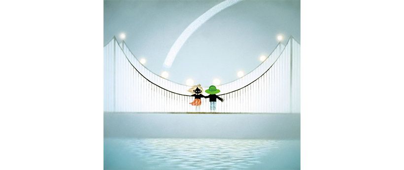 《つり橋はぼくのハープ》(1988年初作)後年、上皇后陛下(当時・皇后陛下)へ献上した作品。以来、皇室との交流が続く。作品はその後、構図や色調を忠実に再現し再制作された。