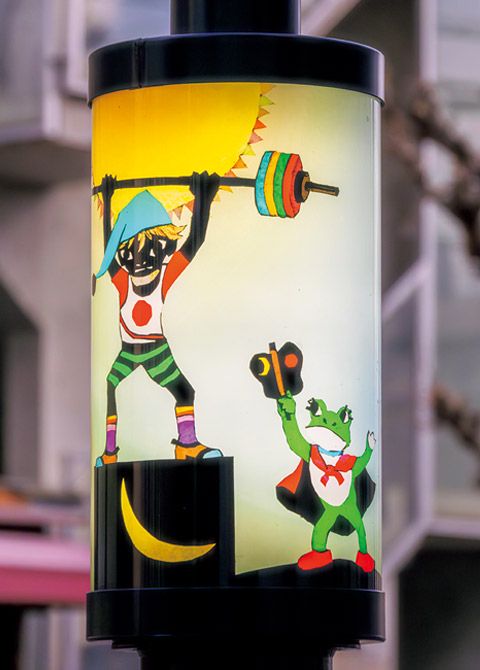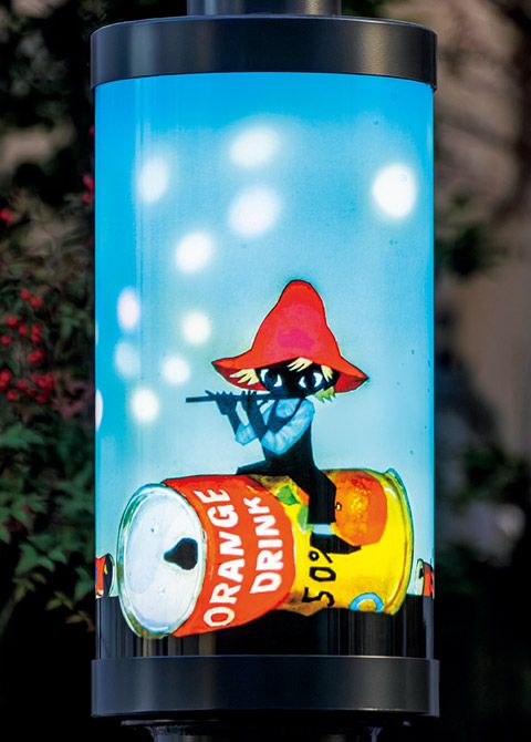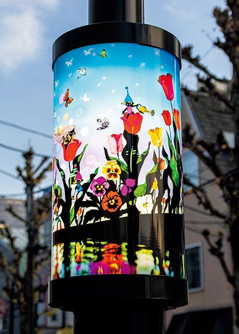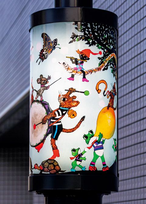 東急目黒線「洗足」駅は、藤城ファンの“聖地”といえる場所。駅前の「洗足商店街」の老朽化した街路灯の建て替えにともない新設された46基の新街路灯の中間灯に、藤城さんの影絵が採用されたのです。