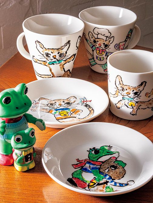 カップやソーサーは、一つ一つ藤城さんが専用のペンで絵を手描きし、焼き付けたもの。