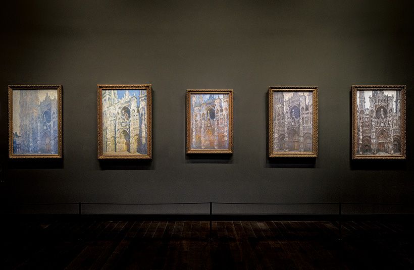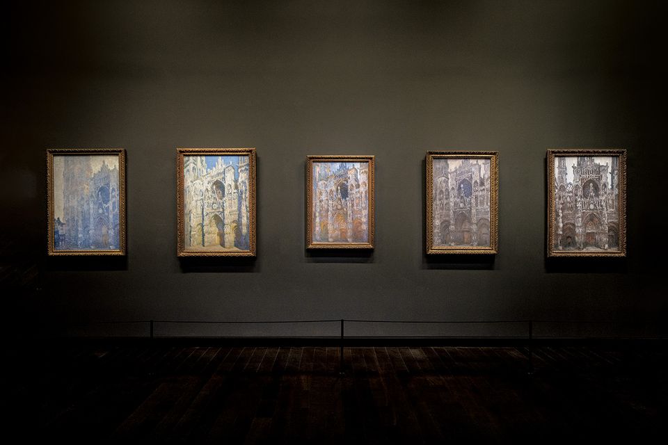 オルセー美術館の印象派の展示室に並んだ《ルーアン大聖堂》の連作。モネは1892年2月から3月にかけてルーアンに滞在し、連作に着手。その後アトリエで仕上げをして、30点余りを制作した。右から3番目と4番目の作品は、現在アーティゾン美術館にて展示中。