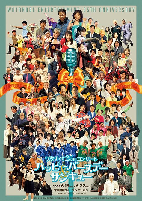 その芸能プロダクション部門を分社化する形で設立され、俳優やお笑い芸人、スポーツ選手など、多彩な人材を擁するワタナベエンターテインメントが、設立25周年を記念してワタナベ25thコンサート『ハッピーバースデー&サンキュー』を開催します。