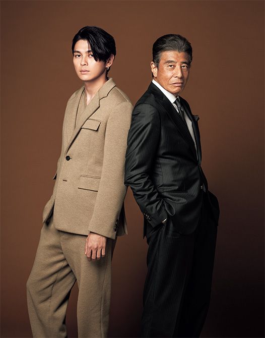 ともに身長約180センチ、スーツ姿が絵になる舘ひろしさんと眞栄田郷敦さん。