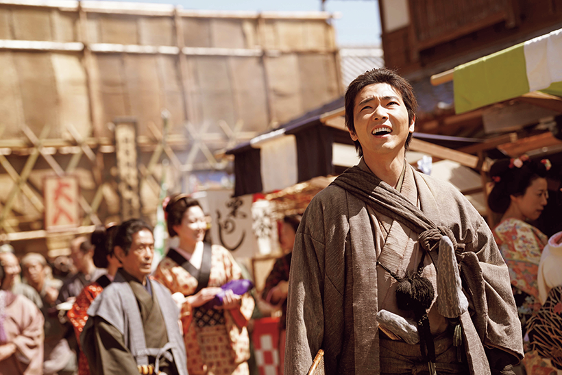 柄本 撮影の初日が、総一郎が江戸に着いた場面だったのですが、そのときに源 孝志監督に、人込みで向かってくる人を避けないでガンガンぶつかりながら歩いてください、といわれたんです。なるほど猪突猛進でそれしか見えないところがある人なのね、と総一郎の人物像が見えてきました。飄々としながら仇討ちにかかわる芝居小屋の一人ずつに話を聞き、真実に迫っていく総一郎を、監督は刑事コロンボのイメージで考え出したみたいです。