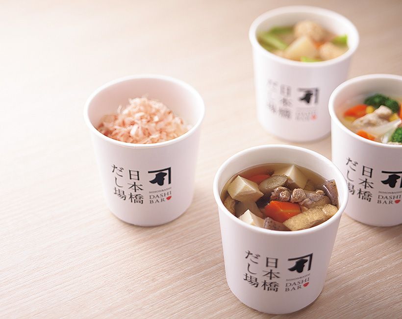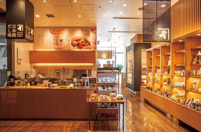関東のだし文化を継承初代髙津伊兵衛が戸板を並べて鰹節と干魚類を売り始め、5年後に鰹節問屋を開業。享保5(1720)年には、瀬戸物町(現在の日本橋室町)に鰹節の小売り店を構えた、歴史ある鰹節専門店です。“一汁一飯” がコンセプトの「日本橋だし場 本店」では、削りたての鰹節を使ったスープなどを手軽に堪能できます。