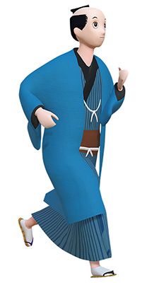 改修工事が行われている江戸東京博物館が開発したアプリゲーム。長屋に住む少年や提灯屋の若旦那となって江戸の町を走り回り、隠されている江戸博の収蔵品を集めます。上写真は江戸のお金事情と商売について学べるシリーズ第3弾の一場面。