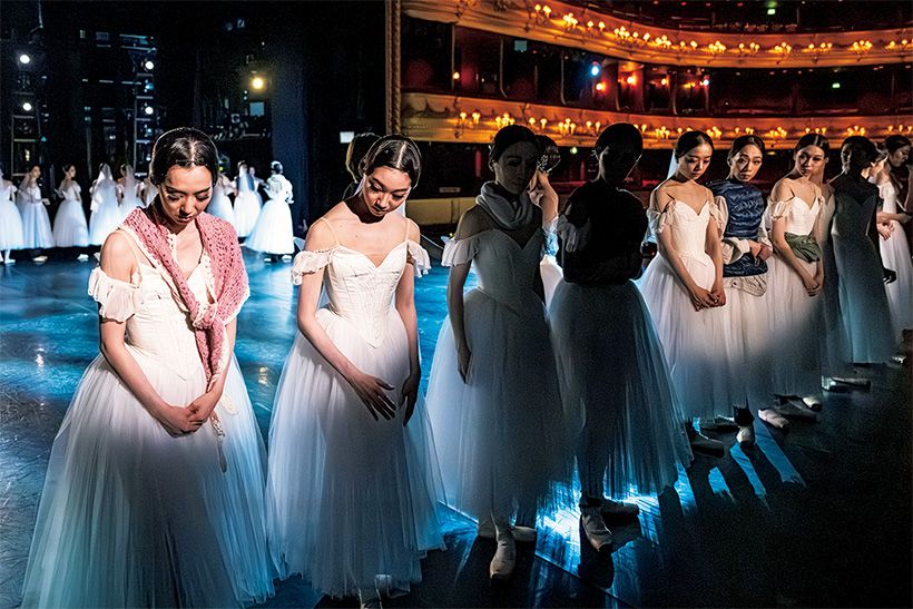 第2幕のコール・ド・バレエのシーン。リハーサルでウィリたちの立ち位置を確認。