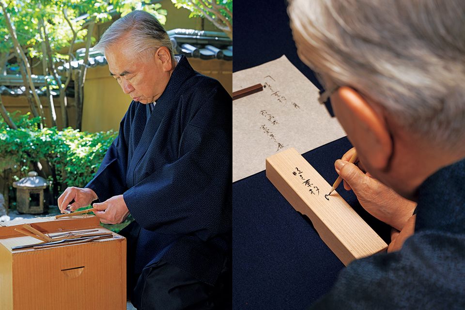 削った茶杓に、家元がその年の歌会始のお題にちなんだ銘を付け、箱にしたためます。