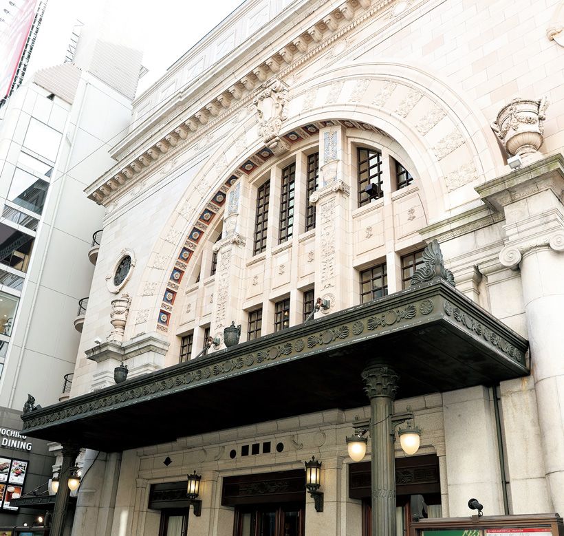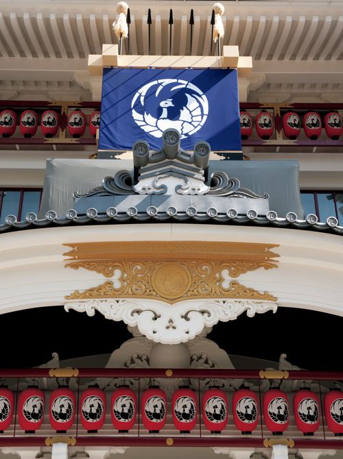 南座の顔見世興行で劇場正面に出演する俳優の名前と紋を記した“まねき看板”を飾る“まねき上げ”の行事は、京都の冬の風物詩(下写真1枚目)。一方、江戸時代、幕府公認の芝居小屋の証であったのが「櫓(やぐら)」(下写真2枚目)。歌舞伎座ではその伝統を受け継ぎ、毎年、顔見世公演の11月に掲げられます。