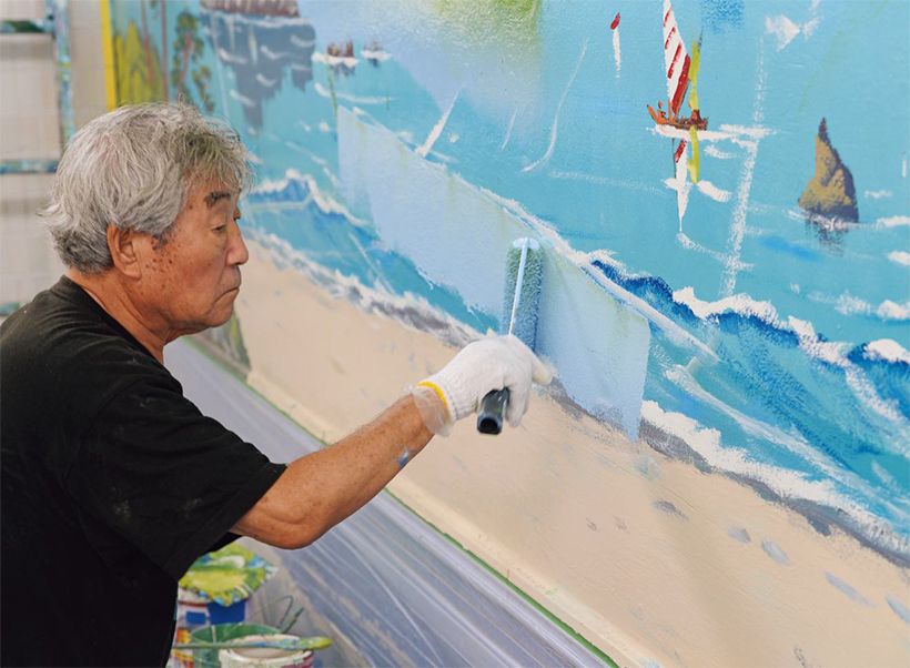 その名は海外にも届き、ロンドン、ニュージーランドで富士山の壁画を一気に描き上げる技術を披露し、ニュースで取り上げられるほど話題に。2025年にはカンボジアのアートフェアにも招かれ、富士山と銭湯絵の楽しさ、美しさを世界に広めています。