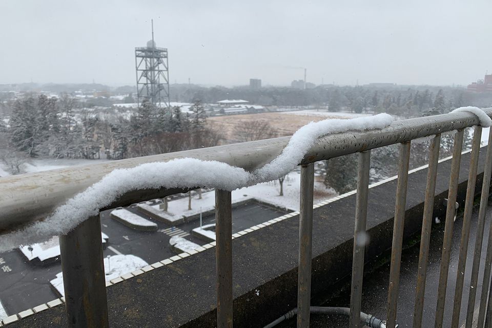 雪紐は、ツルツルとした手すりや円柱状の柱に雪が付着したときにできやすく、融け始めた状態なので、長く残らないことが多いです。