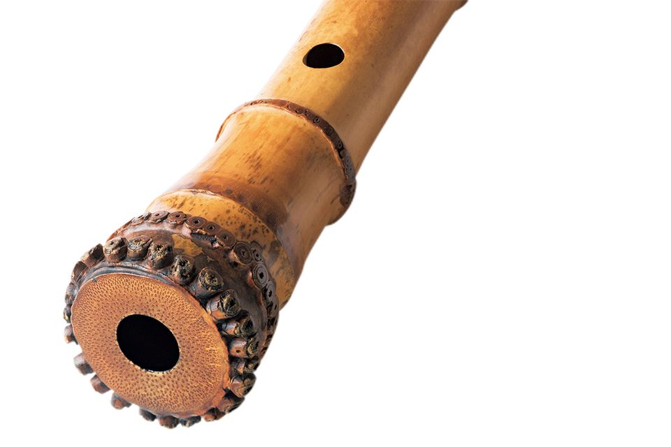 文=本間豊堂(尺八演奏家)尺八は「真竹」という竹の根元部分から作られます。五つの指孔の操作や息の微妙な角度の変化によって音程を生み出し、そこに吹き方一つで、明るく澄んだ音から、荒々しい音まで、幅広い音味(ねあじ)を加えます。時に揺らいだり、時にかすれたりと、キャリアの長い奏者でも完璧な一音を出すのは難しい非常に不安定な楽器ですが、その音色に美を見出したのが和の感性といえるでしょう。音色には奏者の心の動きも大きく影響することから、古くは禅の修行具として用いられ、「一音成仏」(一音で悟りの境地へと達する)という言葉もあるほどです。