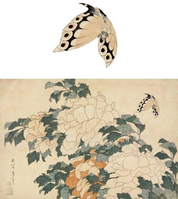Butterfly and Peonies Katsushika Hokusai 25.9×38.3cm c.1831-1832