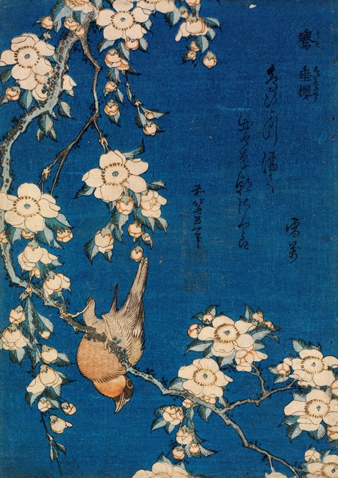 Bullfinch and Weeping Cherry Katsushika Hokusai 24.5×17.6cm c.1834