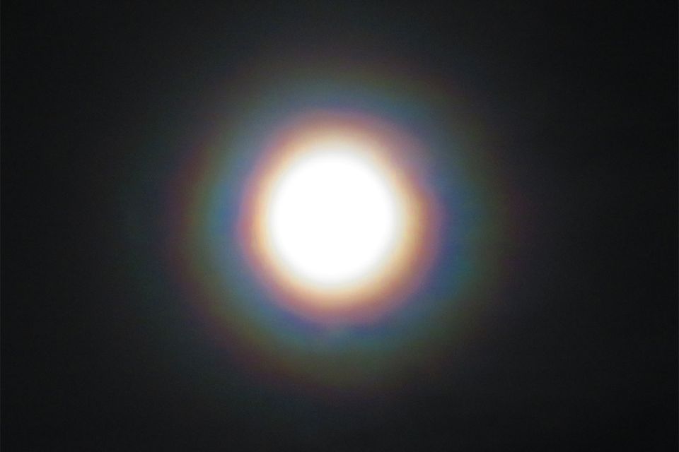 晴れた夜空に月が昇ってきたら、月の周りの虹色を探してみてください。