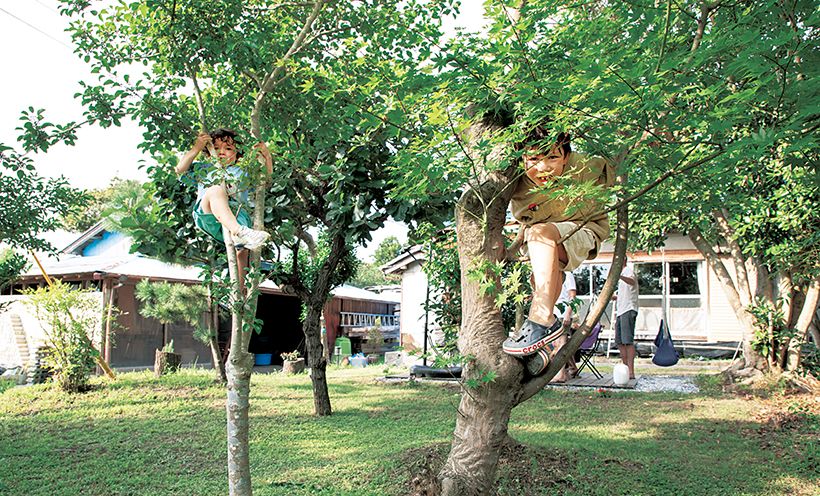 大人がおしゃべりしているとき、子どもたちは木に登ったり、ブランコをこいだりして自由に遊ぶ。無理にテーブルにつかせることはせず、大人も子どももリラックスする時間を大切に。