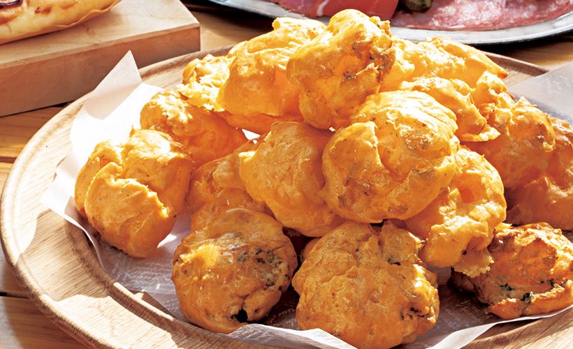 シュークリームの皮に似た生地にチーズを練り込んだおつまみ。カマンベールなど塩分のあるチーズなら好みのものでOK。