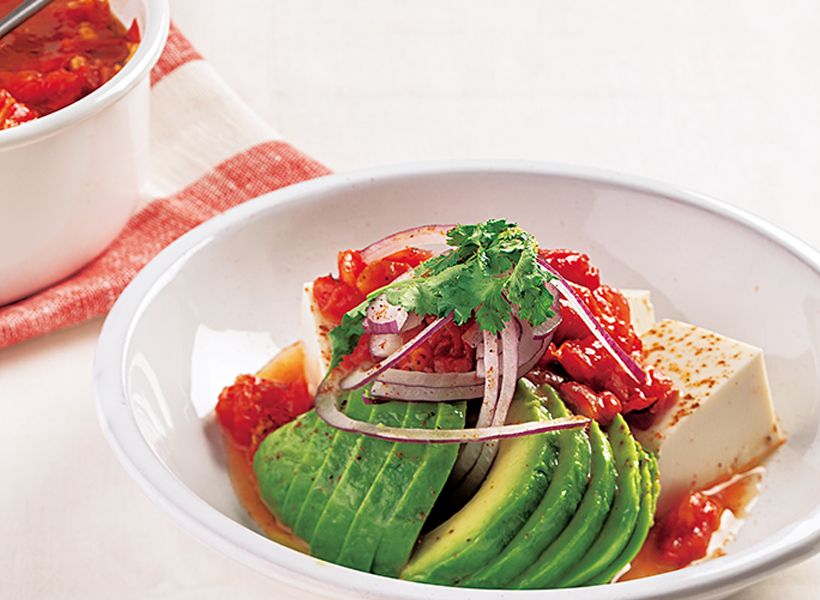 豆腐とアボカドのざくざくトマトソースがけ