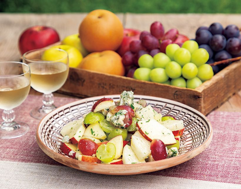 *シャインマスカットとクイーンルージュの2種を使用。種がなく皮ごと食べられるものならばなんでもよい。作り方(1)りんごは皮ごと縦4~6等分にして1センチ厚さに、梨は縦4等分にして1センチ厚さに、ぶどうは皮ごと縦半分に切る。