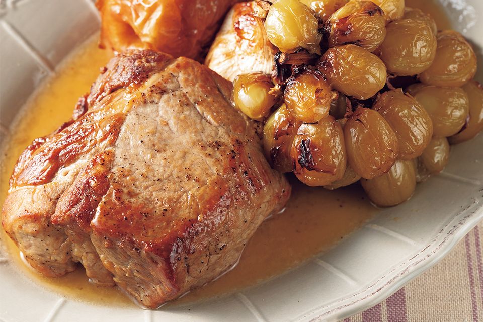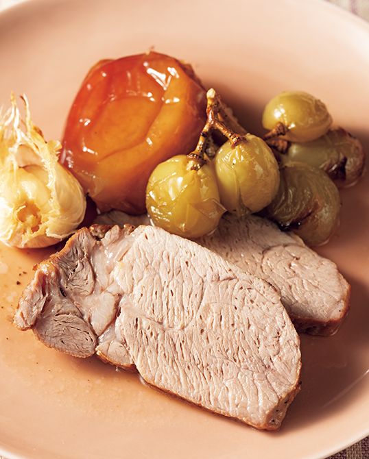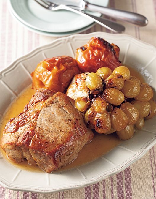 豚肉、りんご、ぶどうのロースト