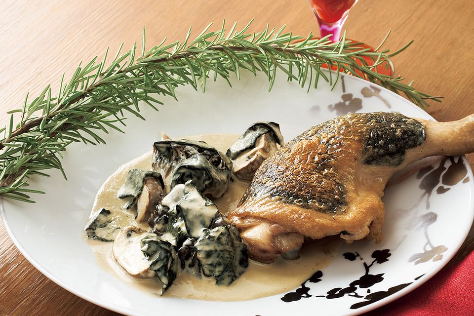 「フランス料理はうまみを凝縮させたり、層状に重ねて味を作っていくんです。日本の食文化の中で洗練されていった海苔の豊かなうまみを重ねることで、味わいの可能性がぐんと広がりますね」と話す渡邉幸司さん。厚みがあって風味がよい成城石井オリジナルの焼き海苔を使った、年末の集いにも向く華やぎ感ある料理を教わりました。