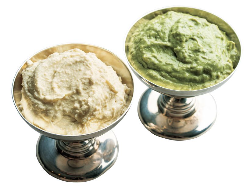 (2)バジルペースト、ギリシャヨーグルトも加えてなめらかになるまで攪拌し、味をみて足りなければ、塩(材料外)やバジルペーストを加え、容器に移す。変色を防ぐため表面にラップをぴたりとして、食卓に出す直前まで冷蔵庫で冷やす。レモン汁や酢(材料外)を少々入れてもよい。