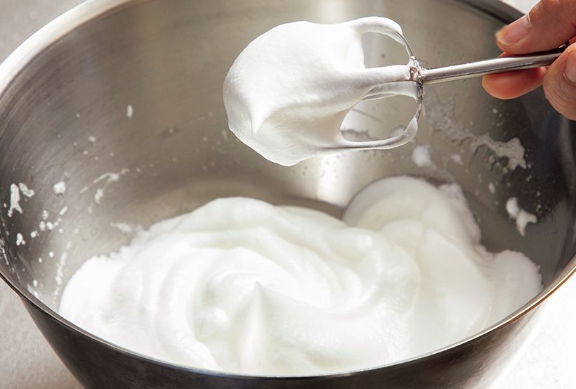 *最後に卵白のボウルに戻し入れることで、ボウルに残りがちな溶かしたチョコレートも均一に混ぜることができる。(3)