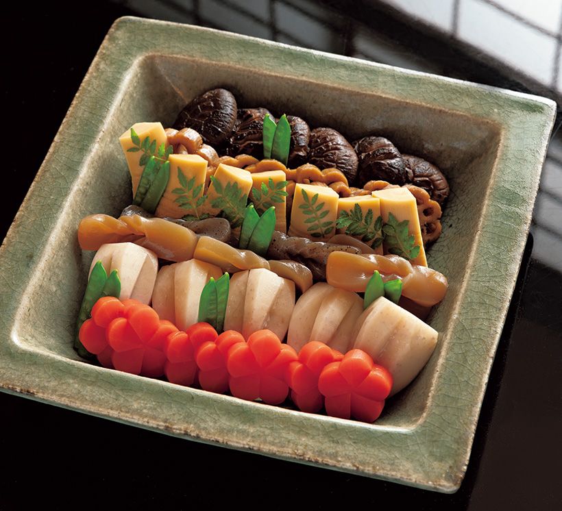 おせちの中で最も家の味が出るのが煮しめ。きちんとひいただしで別々に煮ることで味わいが深まり、細工切りで華やかに。