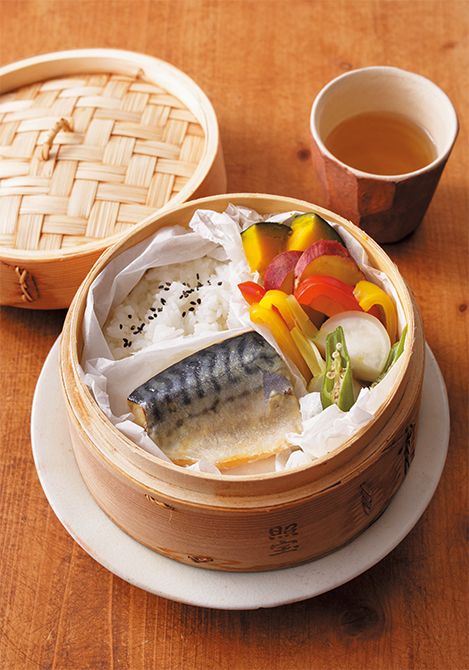 冷凍のさばの切り身と冷凍ご飯、余り野菜をせいろに一緒に詰めれば、ヘルシーな和定食の出来上がり。冷凍食材も、せいろで蒸せば、ふっくらおいしく仕上がります。