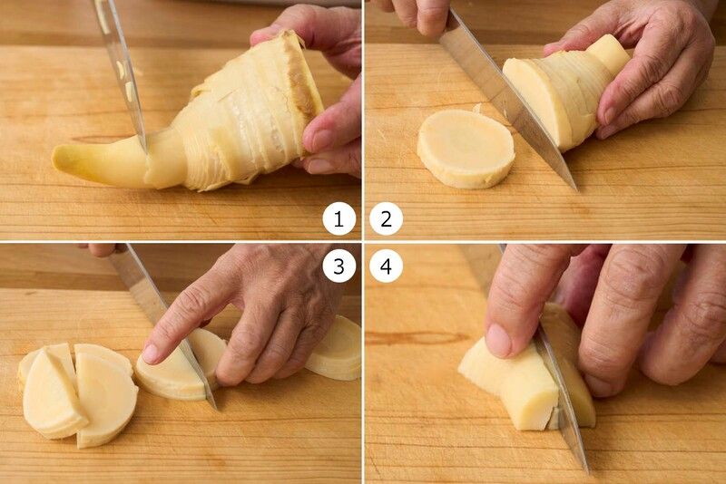下ゆでした、たけのこの切り方