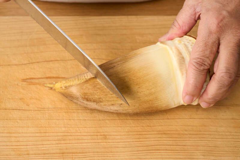 春の短い時期にだけ出回る生のたけのこ。手に入ったらぜひご自宅でゆでてください。姫皮が楽しめるのも、生のたけのこの醍醐味です。
