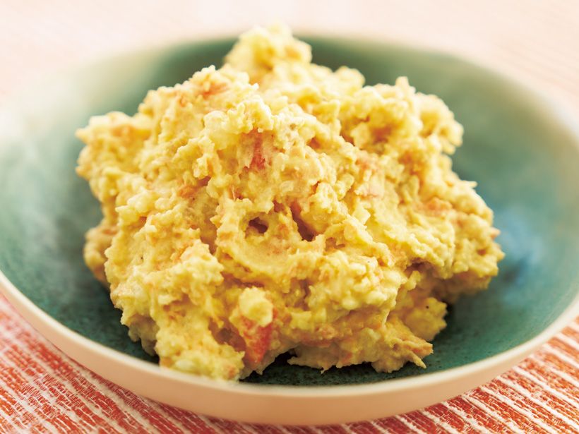 K よかったぁ。ではポテサラを。“にんじんしりしり”を加えてほんのり沖縄風にしてみました。