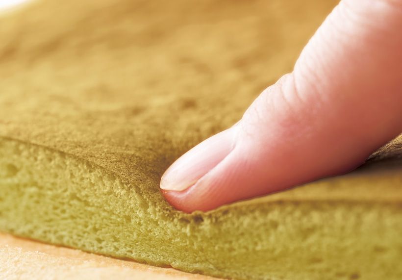 もっちり生地は、指で押すと弾力があります。生地が口の中に滞在する時間が長く、抹茶の味が濃厚に感じられます。