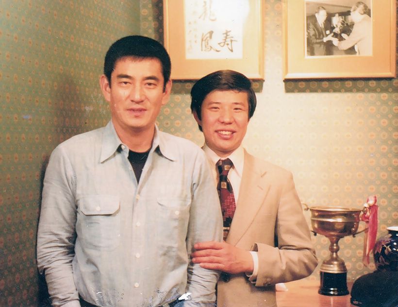 高倉 健さんとは「中国飯店」の開業から間もない中条さん26歳のときからのおつきあい。当時の六本木店での思い出の一枚。(写真は中条富造さん提供)