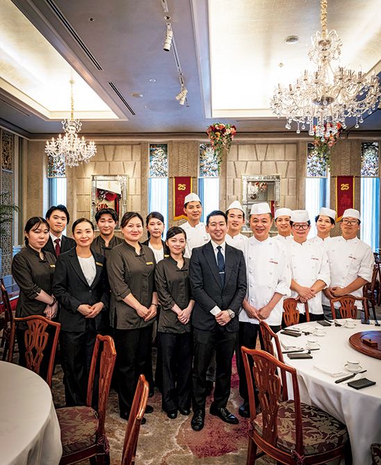 「富麗華」のスタッフが集合。現在は全グループで500名近くのスタッフが店を支える。