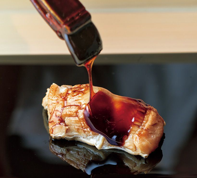 「すしの主役は米」と語るご主人の言葉どおり、一粒一粒が立ったシャープな酢飯が身上です。浸水時間を最大限に長くした後、羽釜で炊き上げる酢飯は、口中でほろりとほどけ、味わうほどに米の甘みが広がります。人肌の温度感も上々。それに合わせてきんめ鯛はやや温めて、まぐろは常温でと、鮨だねの温度への細やかな配慮も美味のポイントです。