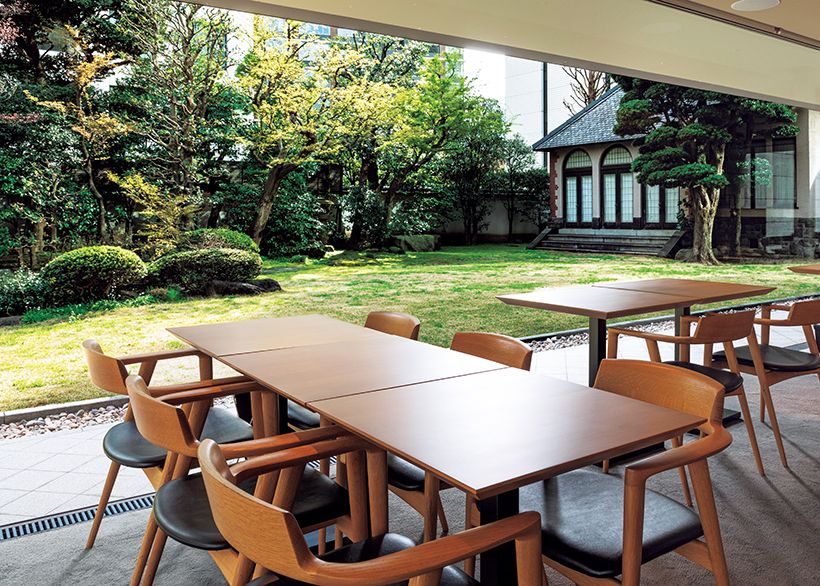 菊池寛実記念 智美術館に併設されたカフェで、五島列島のハーブをブレンドしたお茶、愛媛の石鎚黒茶など香り高いクラフトティーとともに、大正時代から続く庭園を眺める時間は格別です。
