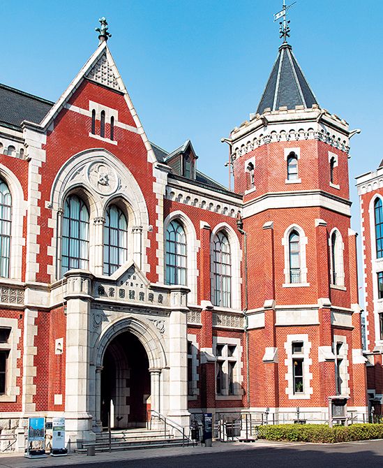 創立50年記念で建設された慶應義塾図書館旧館。東南隅の尖塔部分にカフェがある。
