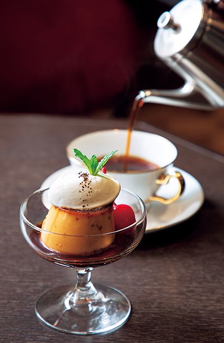 東京・蔵前にある専門店「蕪木」の豆を使用した「コーヒー」800円。日替わりスイーツ「自家製プリン」600円は上品な甘さが特徴。