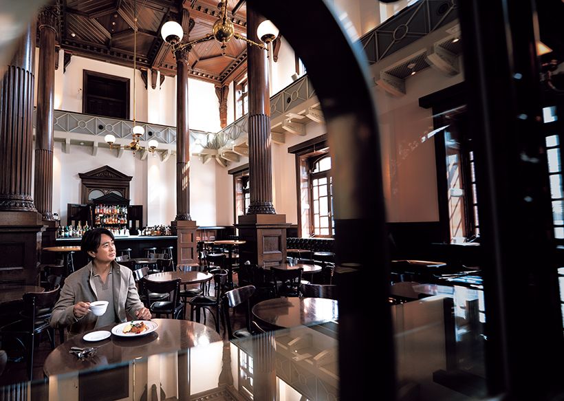 「天井が高くて気持ちいいですね。クラシックな建築で優雅な気分になれる空間です」と、俳優の石黒 賢さん。カフェが好きで、国内外どこでも一人でも訪れるといいます。