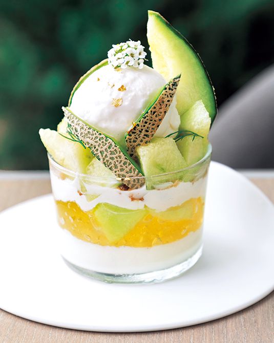 2025年4月~5月限定のパフェ「クープミニョン メロン」1980円。