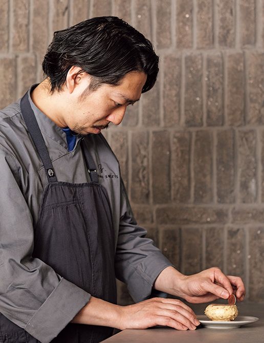 シェフパティシエの松山洋樹さん。甘みと酸味、香りと食感を重ねることで、満足感を追求。